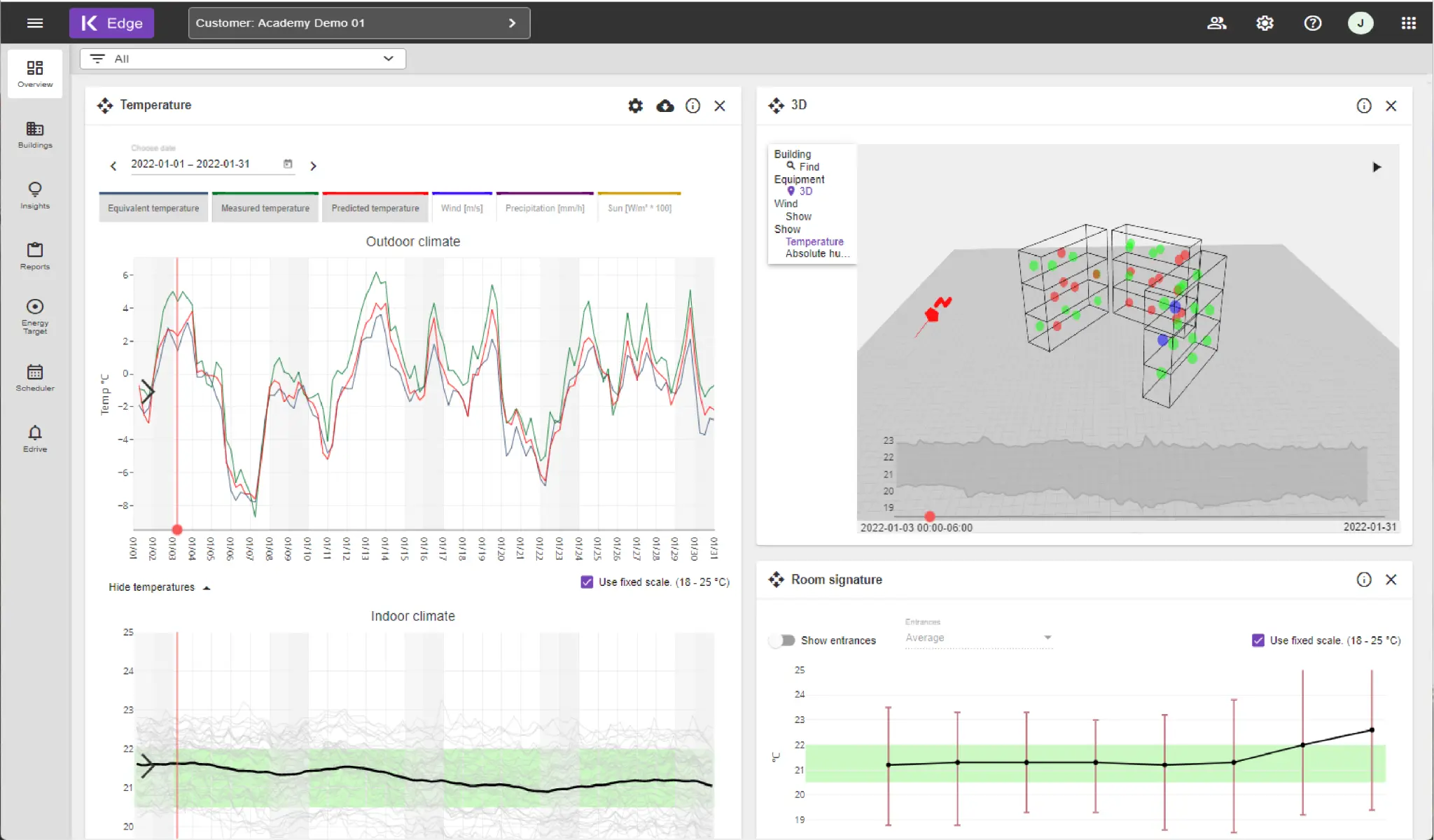 At opretholde et stabilt og komfortabelt indeklima i mange lejligheder er en kompleks opgave. Boligforeninger står dagligt over for udfordringer med beboernes komfort, energieffektivitet og bygningernes ydeevne. Her tilbyder Edge, Kionas intelligente bygningsstyringssystem, klare fordele. Med avanceret 3D-visualisering af varme- og fugtfordeling får boligforeninger et kraftfuldt værktøj til at overvåge, diagnosticere og forbedre indeklimaet i hele deres ejendomsportefølje.